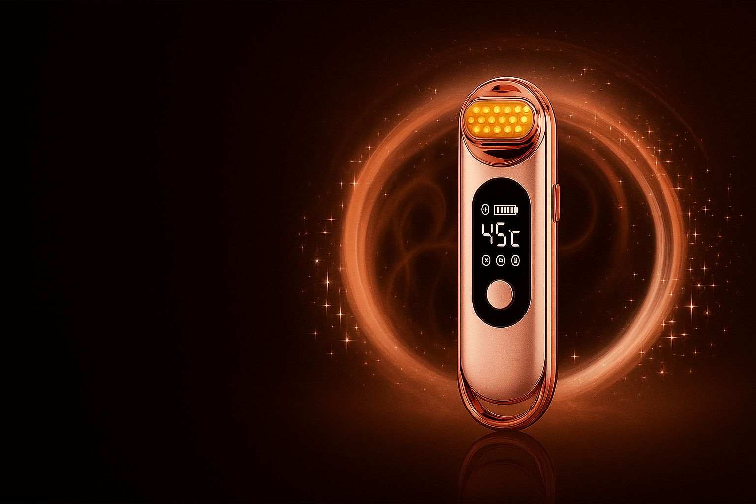 The TERLEST RF Device is an advanced home-use skincare instrument that combines radiofrequency, ultrasonic waves, ions, and LED light therapy to improve skin tone, elasticity, and radiance.